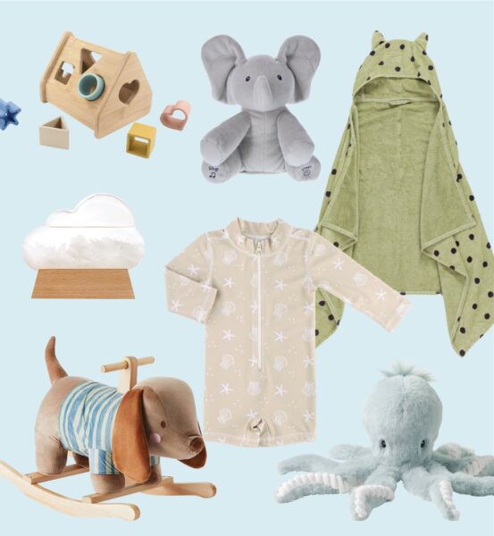 Baby Bunting 4Baby Swim All In One Zip Swimsuit $29.99, Baby Bunting Baby Gund Animated Flappy The Elephant Plush Toy $99.95, Baby Bunting Playground Shape Sorter $44.99, Bed Bath N’ Table Morgan & Finch Dash Rocking Toy $149.95, Bed Bath N’ Table Morgan & Finch Inky Octopus Soft Toy $29.95, Howards Storage World Cloud Weather Forecast Station $49.95, Pillow Talk Kids Dinosaur Hooded Towel $39.95.