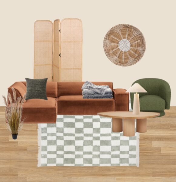 Eureka Furniture Cove Folding Screen $679, Eureka Furniture Sorghum Pot $89, Freedom Malvern Table Lamp $229, Freedom Niah Coffee Table $1,299, Nick Scali Lenxy 6 Seat Corner Terminal Sofa POA, Pillow Talk Habitat Piscina Check Fringed Floor Rug $299.95, Pillow Talk Habitat Sebal Seagrass Woven Star Wall Hanging $22.95, Plush Elanor Swivel Armchair POA, Sheridan Outlet Caral Cushion $79.99, Sheridan Outlet Millbrook Faux Fur Throw $329.95.